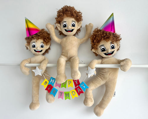 Please note: Every Birthday Buddy comes with their own unique party outfit at no extra cost. Please email us if you have a colour preference. For fun, playful ideas on how to pose and accessorise your Buddy, follow our instagram profile @TheBirthdayElf